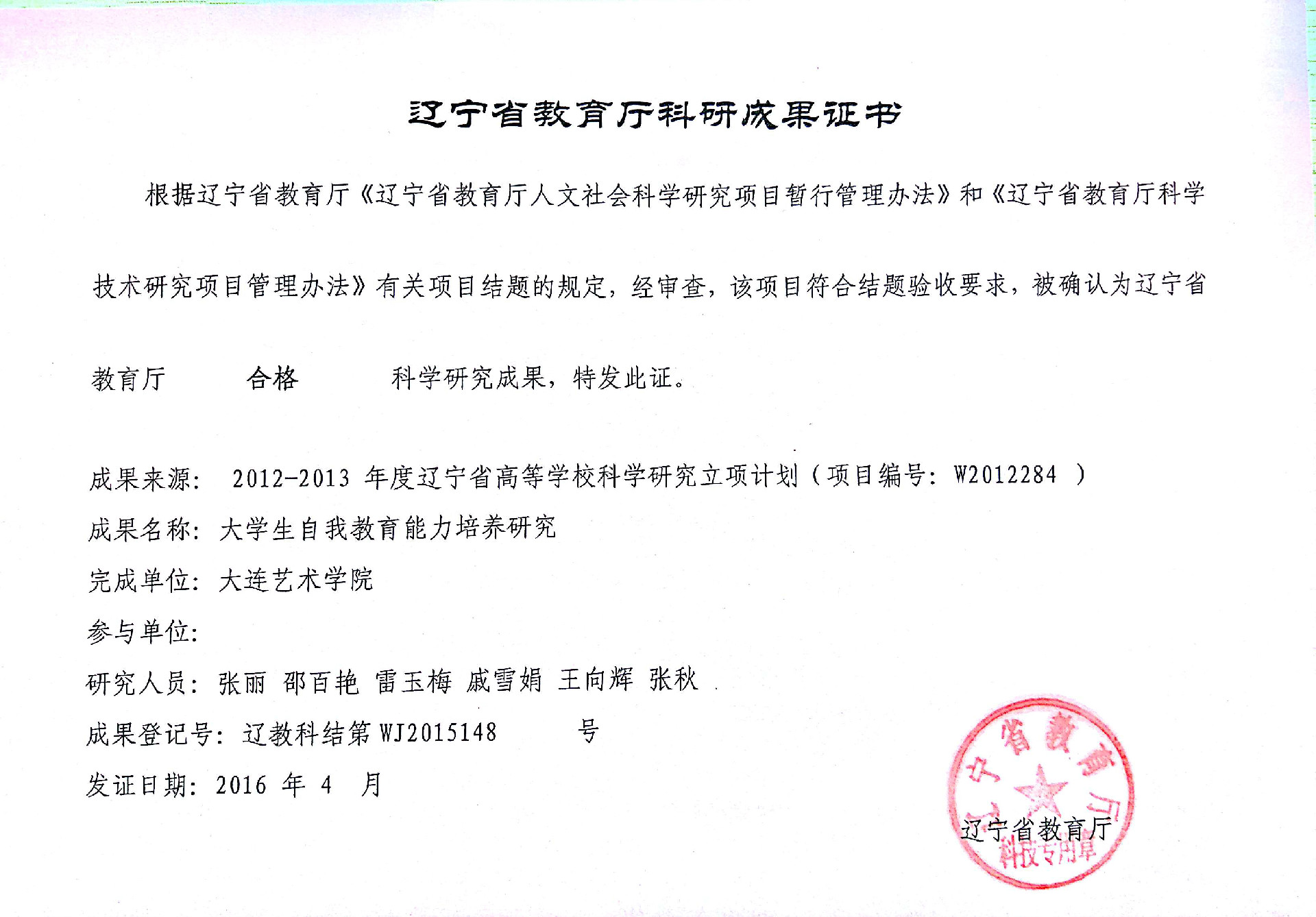 2012-2013年度辽宁省教育厅科学研究立项项目结题证书